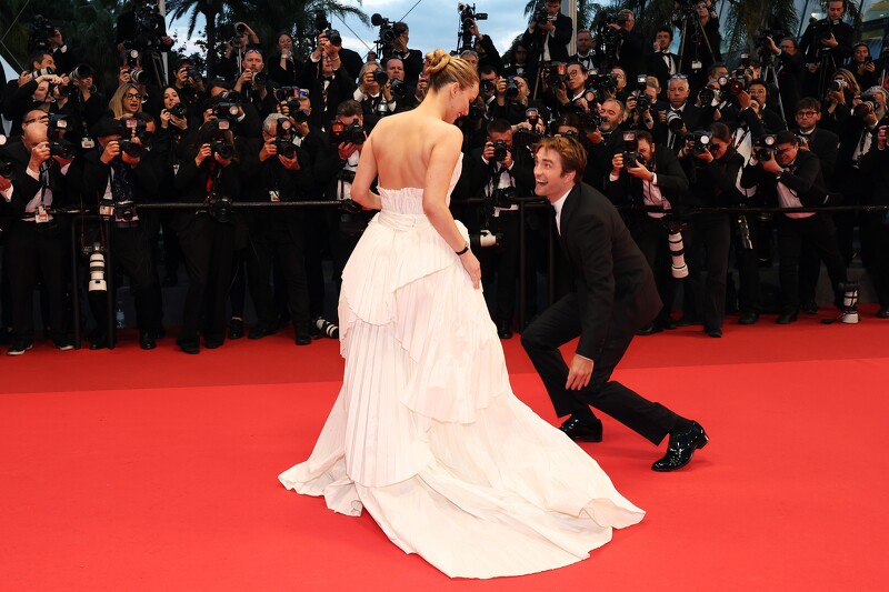 Jennifer Lawrence珍妮佛劳伦斯有多次的红毯摔倒经验,而在2025坎城影展上,她与Robert Pattinson罗伯派汀森为新片《Die My Love》踏上首映红毯,结果罗伯派汀森竟不小心踩到珍妮佛劳伦斯的裙襬,可能心中也很担心她再次摔倒,马上蹲下替她整理裙襬,展现绅士贴心的一面。他们身上的造型则是由Dior张罗,珍妮佛劳伦斯的丝绸皱褶礼服灵感来自1949年的设计。