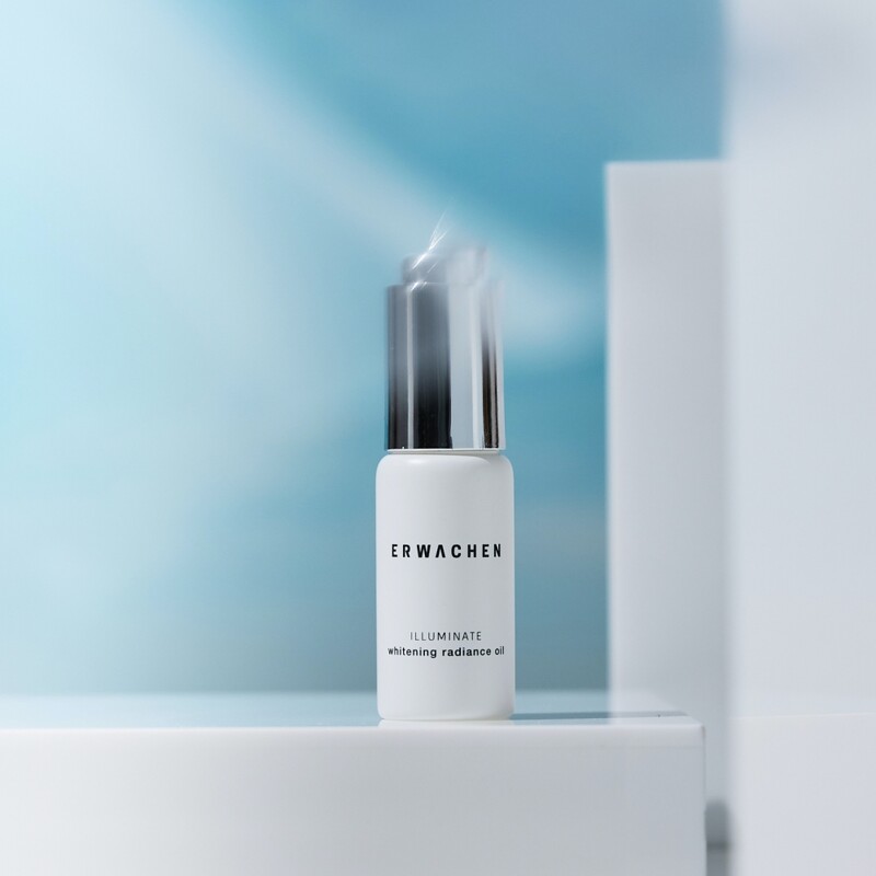 ERWACHEN醒寤御光净白焕采油质地。 当中除了加入黄金御光海藻精华外,协同含有脂化维他命C诱导体的不仅抑制黑色素,同时确保维他命C的高稳定性,深层渗透肌肤匀亮肤色,结合红花萃白诱导体以及拥有药蜀葵、米糠、光草根的三种植物萃取-亮白植光素,舒缓晒后不适、提升肌肤明亮光泽。