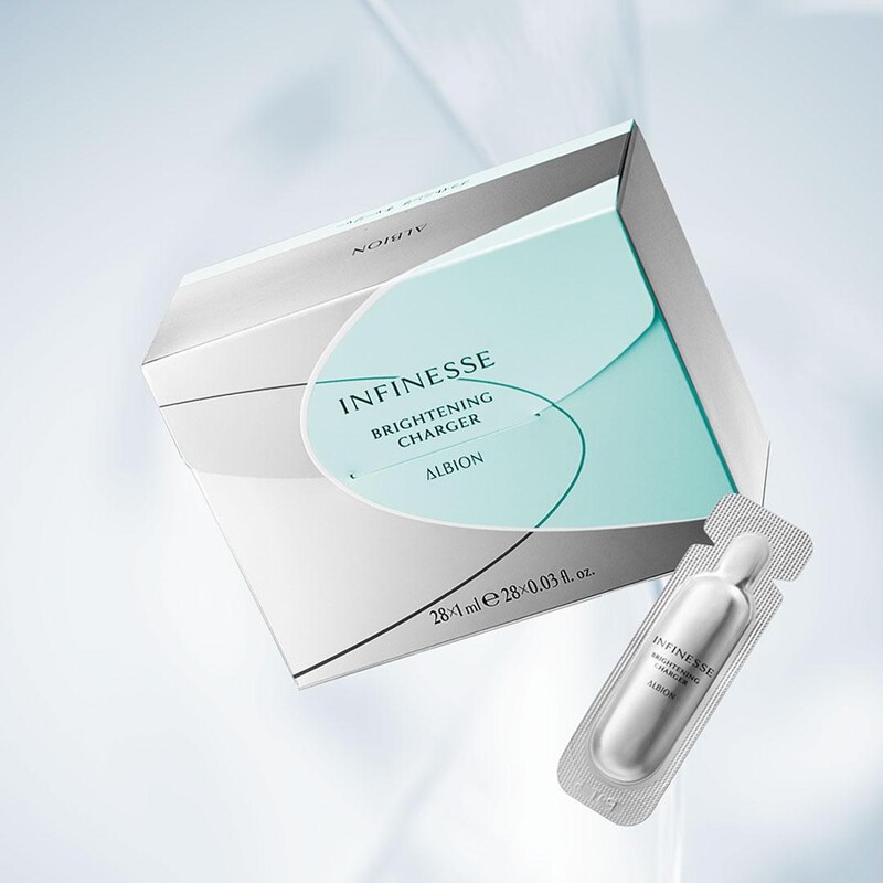 ALBION赋活紧緻亮白28天快充胶囊28*1ml,NT2,650 另外还以肌肤代谢循环28天原理推出,透过 28天不间断以修护肌肤,更提供维他命 C,泛醇(维他命原 B5)、维他命 E、虾红素、穀胱甘肽、精氨酸、牡蛎精萃等多种高效成份,维持肌肤健康代谢,彷彿快速充电一样让劳累而罢工的肌肤重拾能量,日肌肤焕发净白紧緻。适合夏季作为加强保养、重要场合前密集护理。