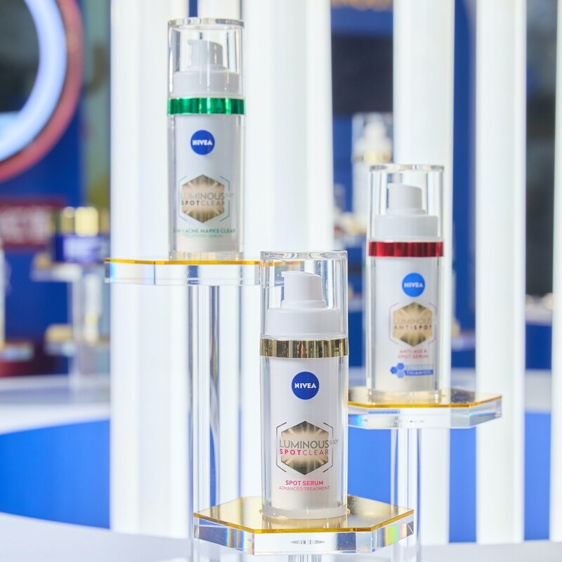 妮维雅观察发现,大家希望淡斑美白保养同时也能解决其它肌肤问题,像是控油、痘印、抗老等等。而妮维雅去年推出LUMINOUS630®淡斑焕白系列时同步发表独家专利淡斑美白成份-THIAMIDOL肽安密多630,能从根源抑制黑色素生成源头-酪胺酸酶的活性,减少斑点数量与面积同时并帮助预防未来斑点的出现。