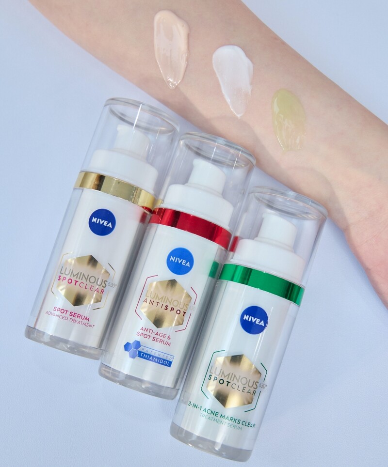 妮维雅LUMINOUS630®淡斑焕白系列。 今年再针对油痘肌与熟龄肌分别推出LUMINOUS630®淡斑焕肤精华、LUMINOUS630®淡斑Q弹精华,提供淡斑美白保养多功能选择。