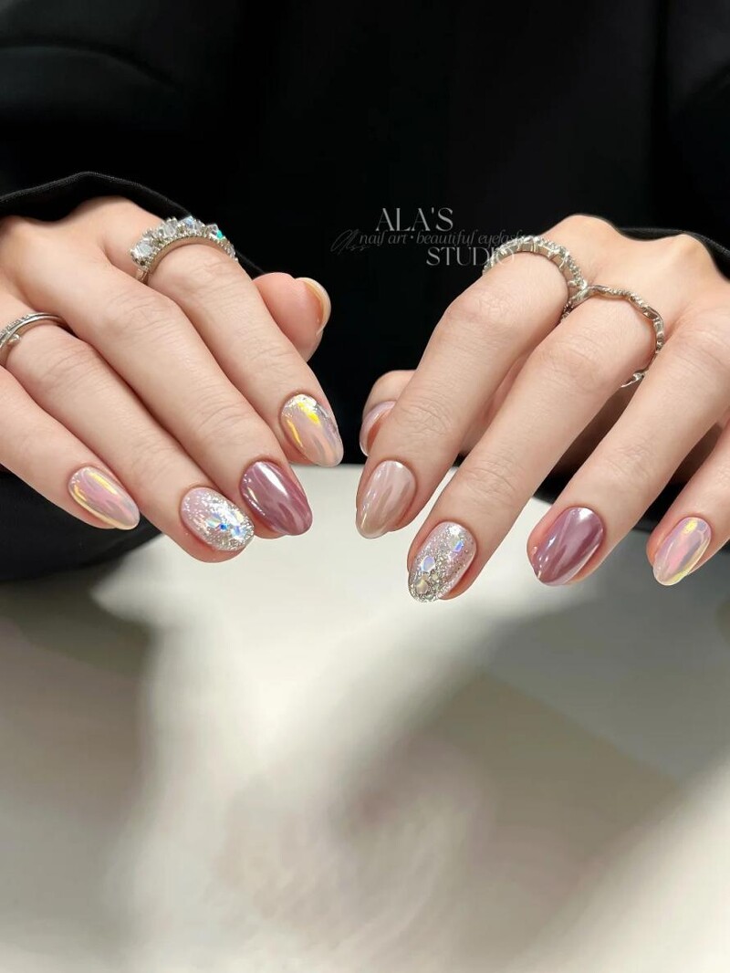 粉色镜面美甲绝对是粉红控的时髦首选!还可以结合晕染、猫眼或撞色设计,为指尖增添丰富层次与奢华感。